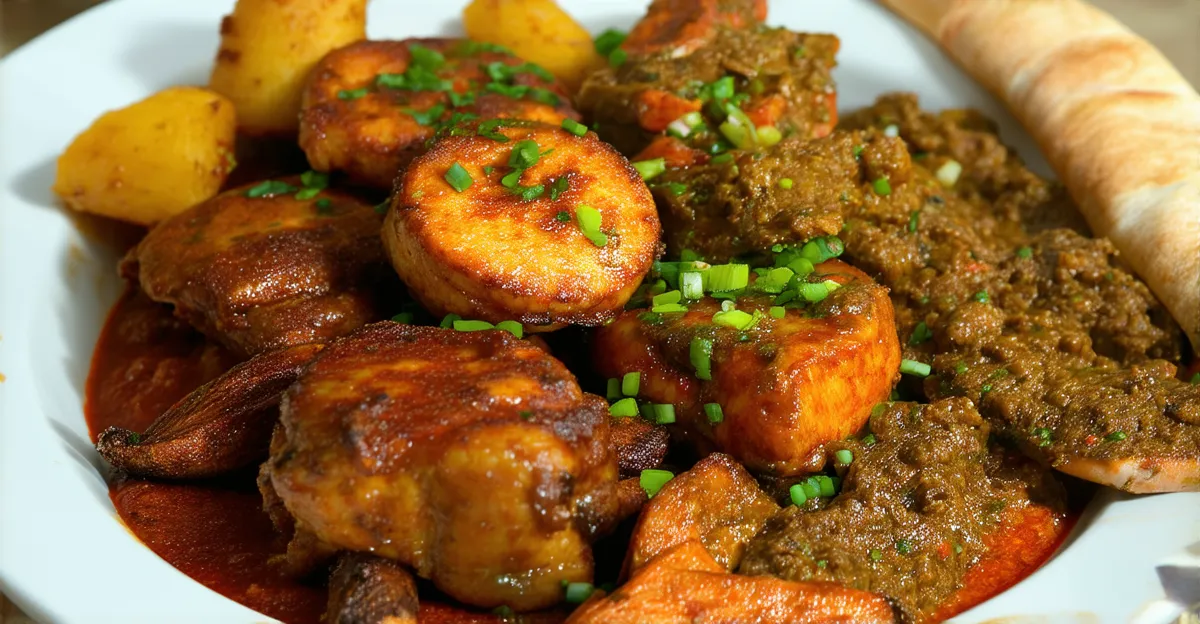 Suya is typically served with sliced onions and tomatoes, adding freshness to the spicy experience. This dish embodies the lively spirit of Lagos, available at bustling roadside stands where you can enjoy it hot off the grill.